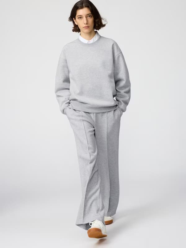 柔らかなスウェット素材と、脚をまっすぐきれいに見せるストレートシルエットが特徴。